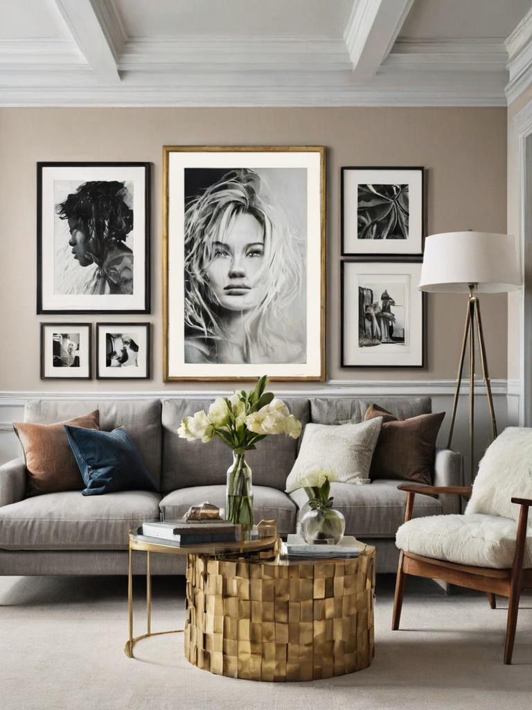 Gallery Wall: Create a stunning, eye-catching focal point in your home by designing a gallery wall with a mix of artwork, photographs, and decorative accents. Start by selecting a variety of frame sizes and styles, ensuring a cohesive color scheme throughout. Arrange the pieces in a visually pleasing layout, considering the balance and negative space, to bring an artistic touch to your living space.