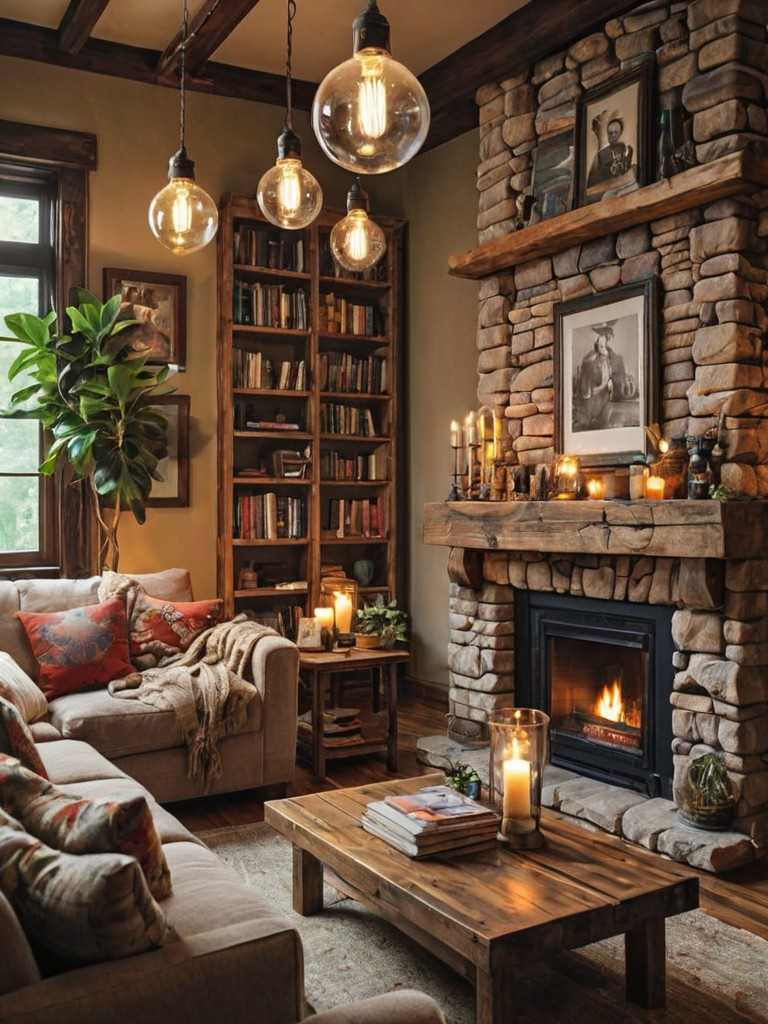 Chic Bohemian Retreat: Transform your home into an exotic oasis, with vibrant colors, bold patterns, and an eclectic mix of furniture and accessories. Create a cozy reading nook with a rattan hanging chair, layered with colorful cushions and a Moroccan-inspired rug. Display an assortment of potted plants, macrame wall hangings, and woven baskets, capturing the essence of bohemian style.